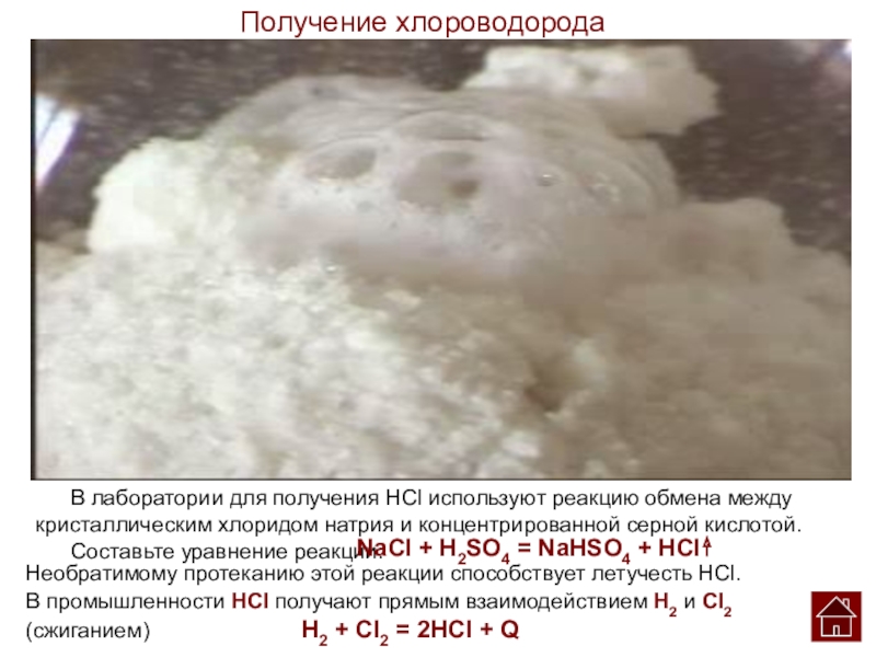 (сжиганием) H2 + Cl2 = 2HCl + Q