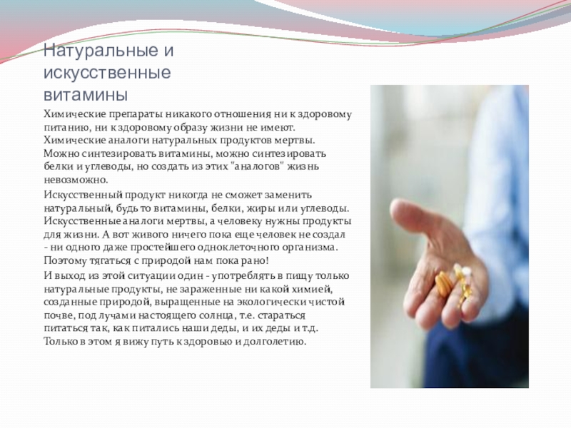 Слайд 6Натуральные и искусственные витамины