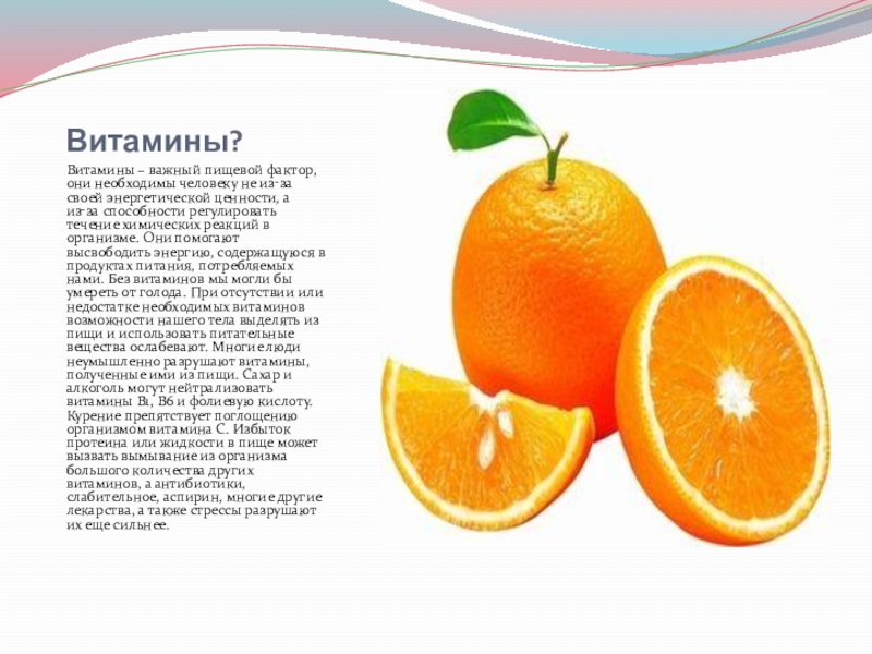 Витамины – важный пищевой фактор, они необходимы человеку не из‑за своей