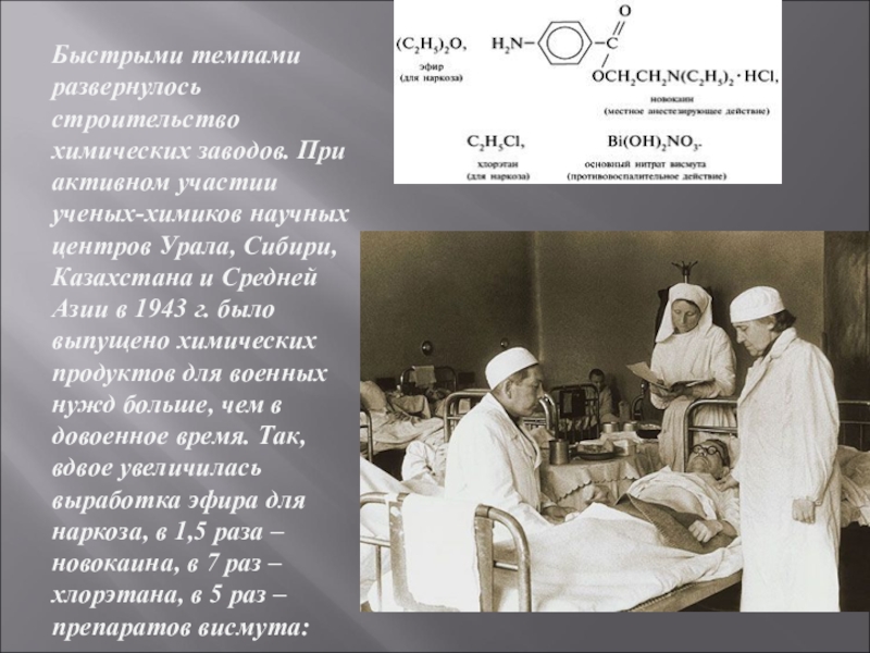 Разнообразные проблемы, актуальные для фронта и тыла, разрабатывали ученые под руководством академика Николая Николаевича Семенова. Их исследования помогали решать проблемы транспорта и повышения эффективности взрывчатых веществ, улучшения огнезащитной пропитки шпал. Ими был усовершенствован метод обработки деталей самолетов, достигнута экономия дефицитных хрома и серной кислоты.