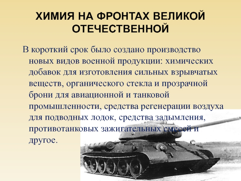 Слайд 3ХИМИЯ НА ФРОНТАХ ВЕЛИКОЙ ОТЕЧЕСТВЕННОЙ