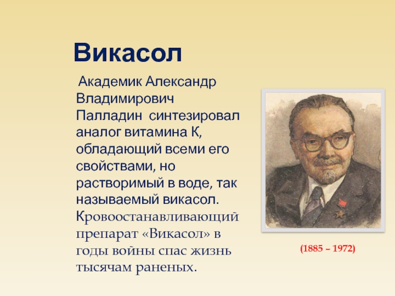 Академик Александр Владимирович Палладин синтезировал аналог витамина К, обладающий всеми