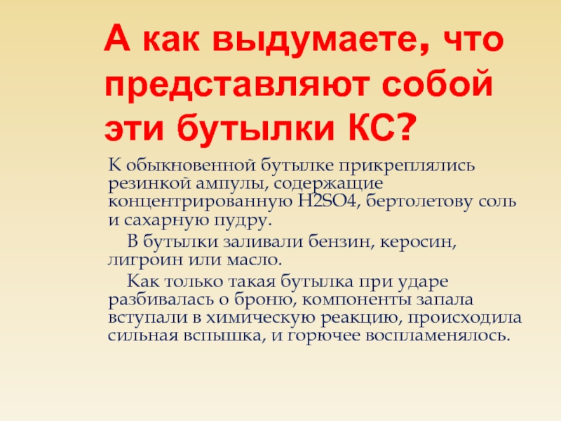 Слайд 29А как выдумаете, что представляют собой эти бутылки КС?