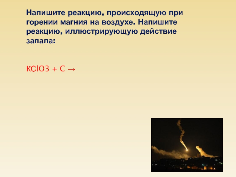 Напишите реакцию, происходящую при горении магния на воздухе. Напишите реакцию, иллюстрирующую