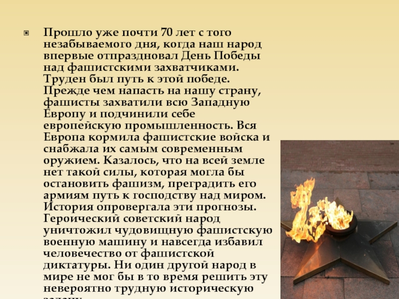 Слайд 2Прошло уже почти 70 лет с того незабываемого дня, когда наш