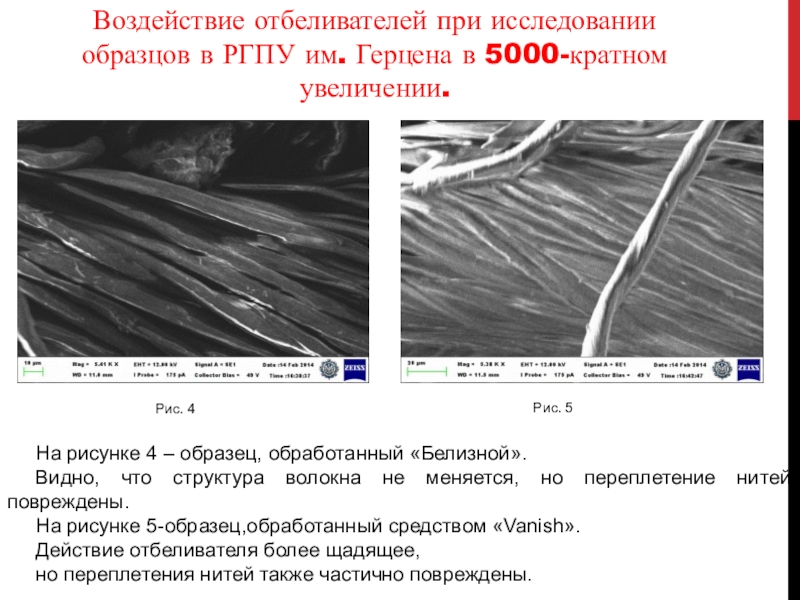 Воздействие отбеливателей при исследовании образцов в РГПУ им. Герцена в 5000-кратном увеличении.