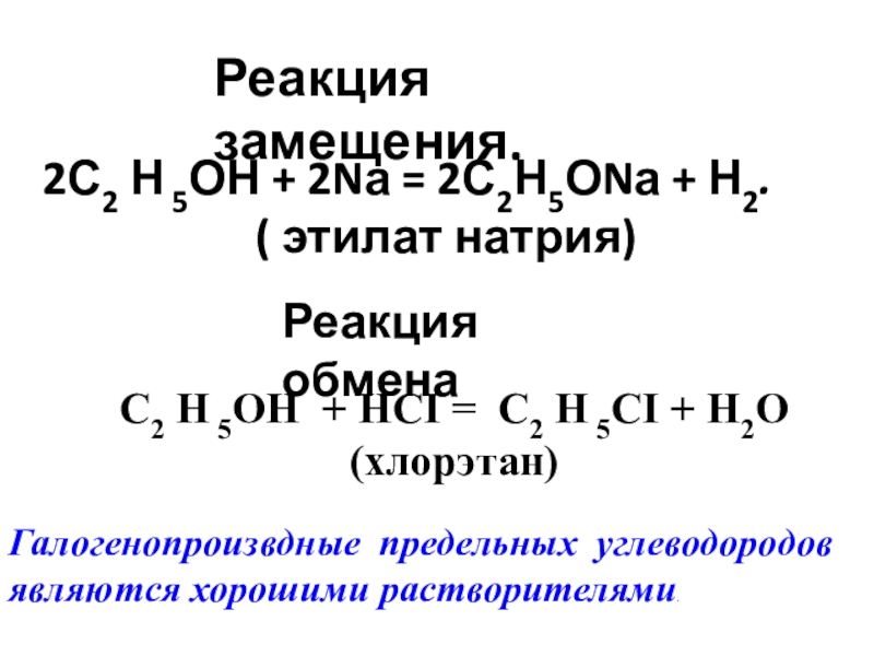 С2 Н 5ОН + НСI = С2 Н 5CI + H2O (хлорэтан)