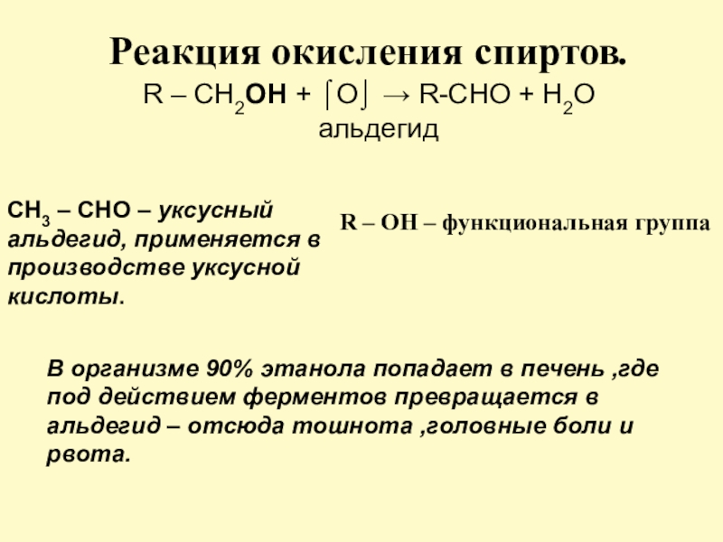 R – СН2ОН + ⌠О⌡ → R-СНО + H2O