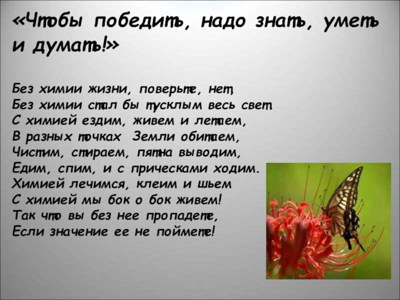 Мы рождены, чтоб химию любить.