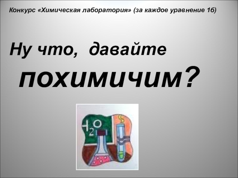 Слайд 18Конкурс «Химическая лаборатория» (за каждое уравнение 1б)