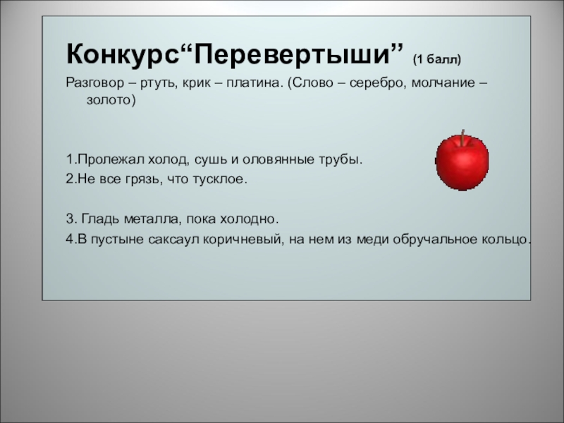 Конкурс“Перевертыши” (1 балл)