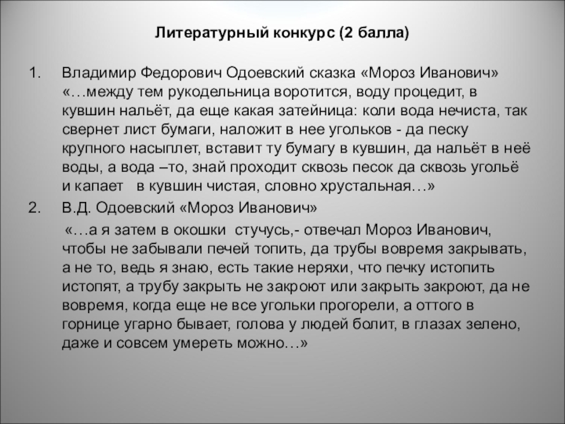 Слайд 16Литературный конкурс (2 балла)