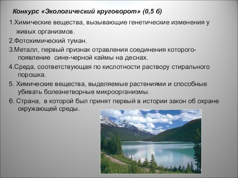 Слайд 17 Конкурс «Экологический круговорот» (0,5 б)