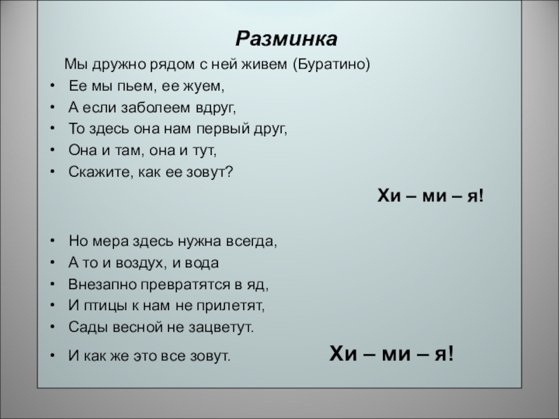 И как же это все зовут. Хи – ми – я!