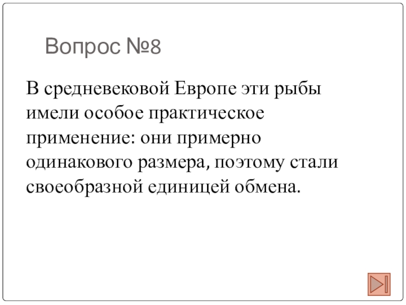 Вопрос №8В средневековой Европе эти рыбы имели особое практическое применение: они примерно одинакового размера, поэтому стали своеобразной