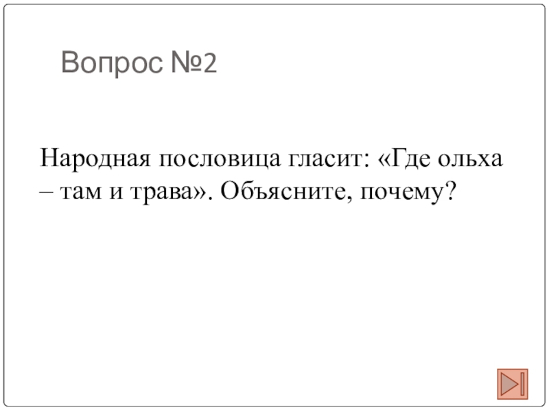 Вопрос №2Народная пословица гласит: «Где ольха – там и трава». Объясните, почему?