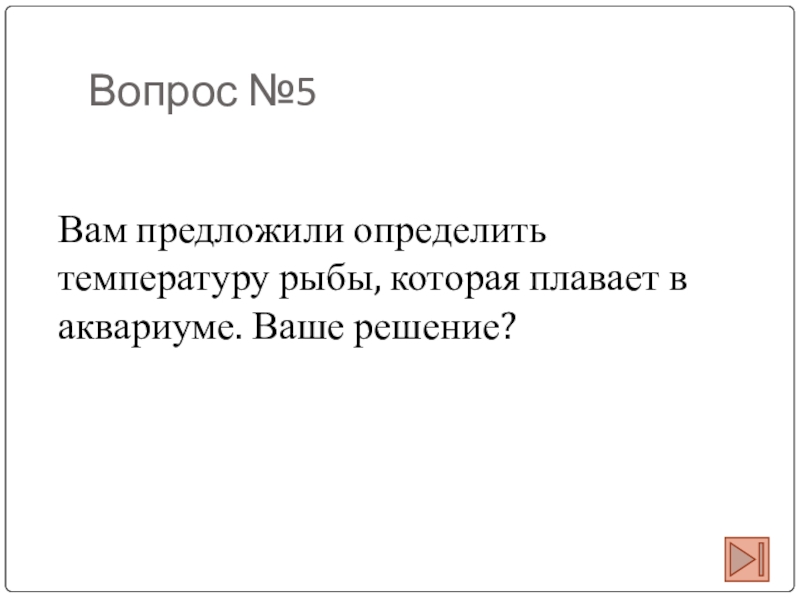 Вопрос №5Вам предложили определить температуру рыбы, которая плавает в аквариуме. Ваше решение?