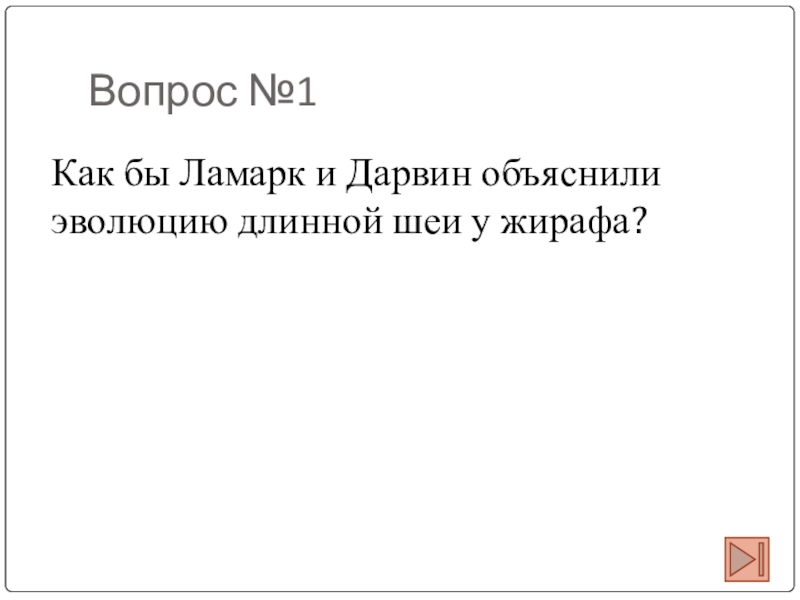 Вопрос №1Как бы Ламарк и Дарвин объяснили эволюцию длинной шеи у жирафа?