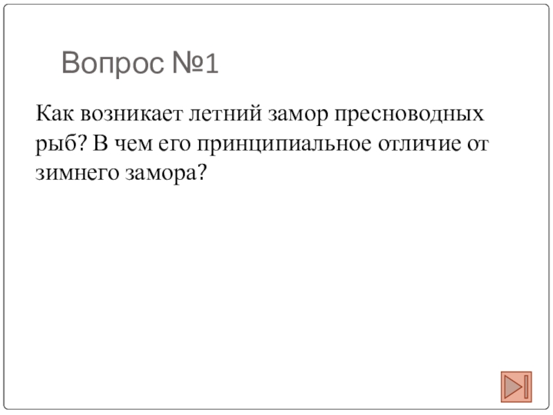 Вопрос №1Как возникает летний замор пресноводных рыб? В чем его принципиальное отличие от зимнего замора?