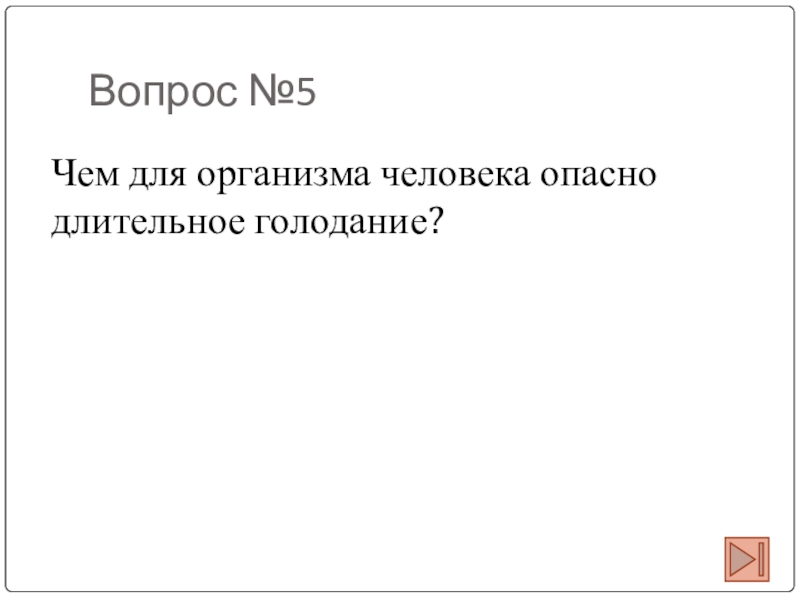 Вопрос №5Чем для организма человека опасно длительное голодание?