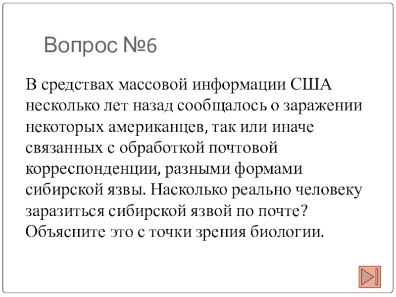 Вопрос №6В средствах массовой информации США несколько лет назад сообщалось о заражении некоторых американцев, так или иначе