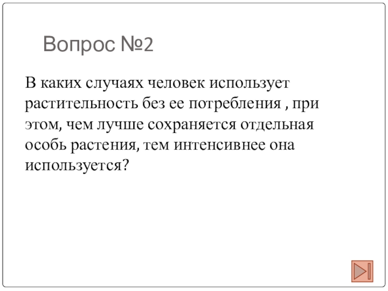 Вопрос №2В каких случаях человек использует растительность без ее потребления , при этом, чем лучше сохраняется отдельная
