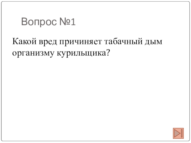 Вопрос №1Какой вред причиняет табачный дым организму курильщика?