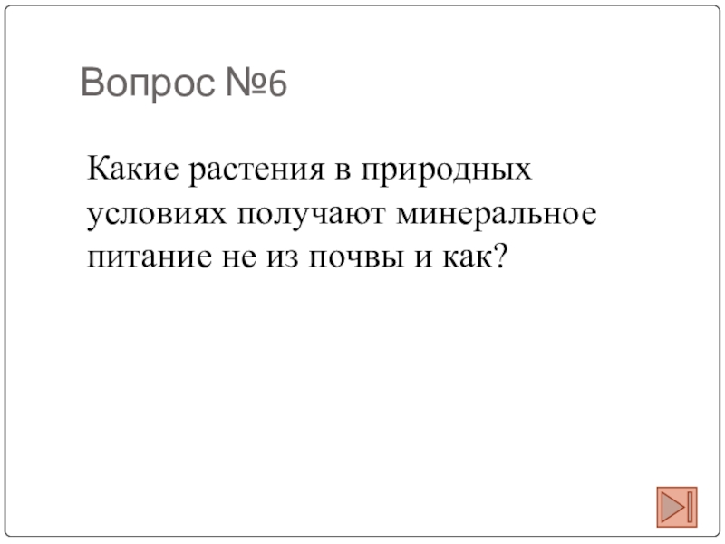 Вопрос №6Какие растения в природных условиях получают минеральное питание не из почвы и как?