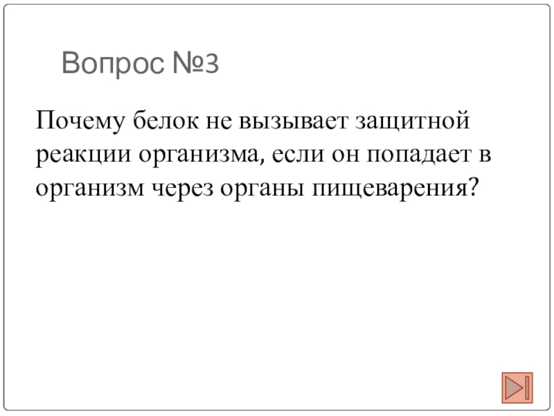 Вопрос №3Почему белок не вызывает защитной реакции организма, если он попадает в организм через органы пищеварения?