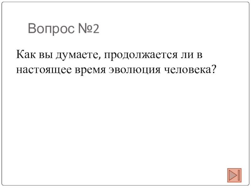 Вопрос №2Как вы думаете, продолжается ли в настоящее время эволюция человека?