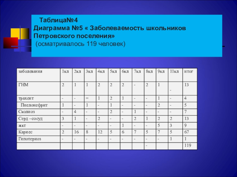 Диаграмма №5 « Заболеваемость школьников Петровского поселения»