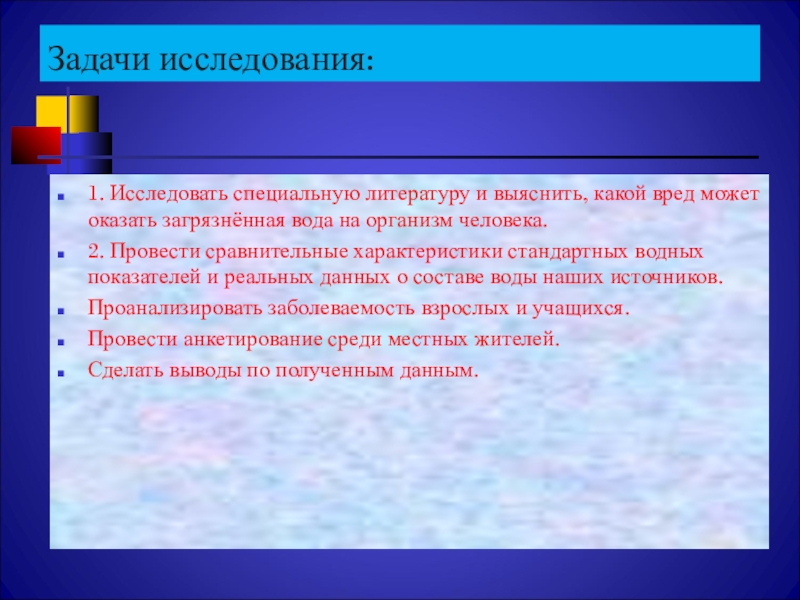 2. Провести сравнительные характеристики стандартных водных показателей и реальных данных о составе воды наших источников.