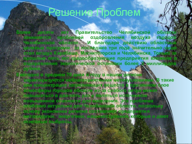 Как передает корреспондент «Нового Региона», одной из особенностей Челябинска является большая насыщенность его промышленными предприятиями, которые располагаются вблизи жилой зоны, большое количество предприятий цветной и черной металлургии с высокой концентрацией вредных производств. Кроме того, из-за природных особенностей расположения Челябинска складывается неблагоприятная атмосферная обстановка. Южноуральская столица, как и большинство уральских городов, находится в горной котловине, из-за чего треть года держится неблагоприятный атмосферный фон. Перегруженность Челябинска автотранспортом усугубляет проблему загрязнения воздуха.
