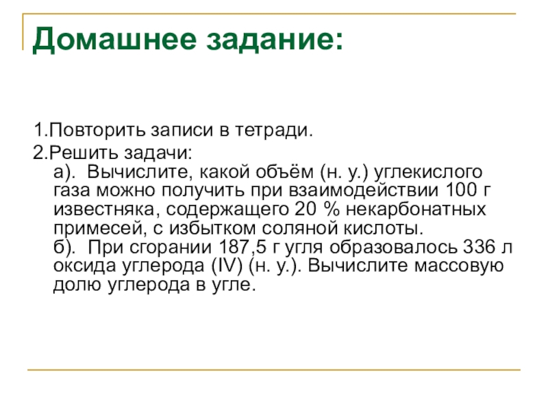 Слайд 92. Сколько литров углекислого газа можно получить из 119 грамм известняка,