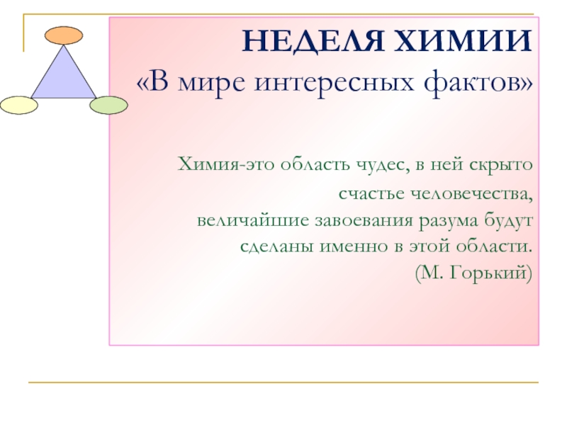 Слайд 3НЕДЕЛЯ ХИМИИ «В мире интересных фактов» Химия-это область чудес, в ней скрыто
