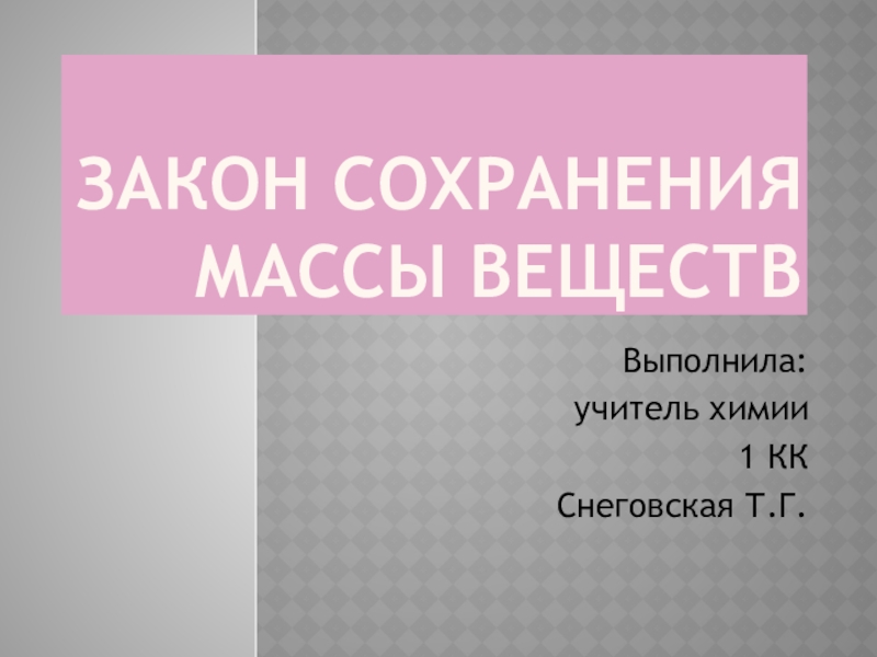 Закон сохранения массы веществВыполнила:учитель химии 1 ККСнеговская Т.Г.