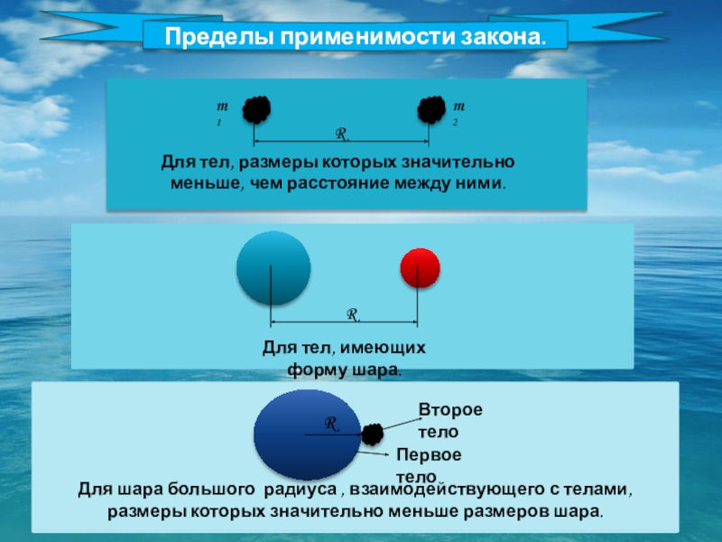 Для тел, размеры которых значительно меньше, чем расстояние между ними.
