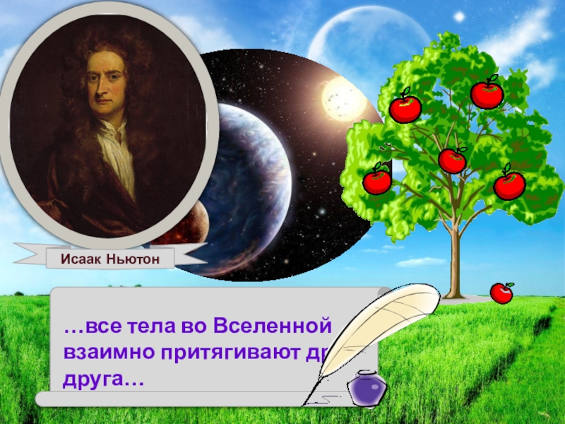 Ньютон рассчитал отношение радиуса орбиты Луны к радиусу Земли. Отношение равнялось 60. А отношение ускорения свободного падения на Земле к центростремительному ускорению , с которым обращается вокруг Земли Луна, равнялось 3600. Следовательно,