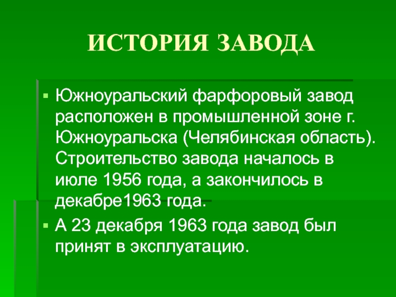 область). Строительство завода началось в июле 1956 года, а закончилось в декабре1963 года.