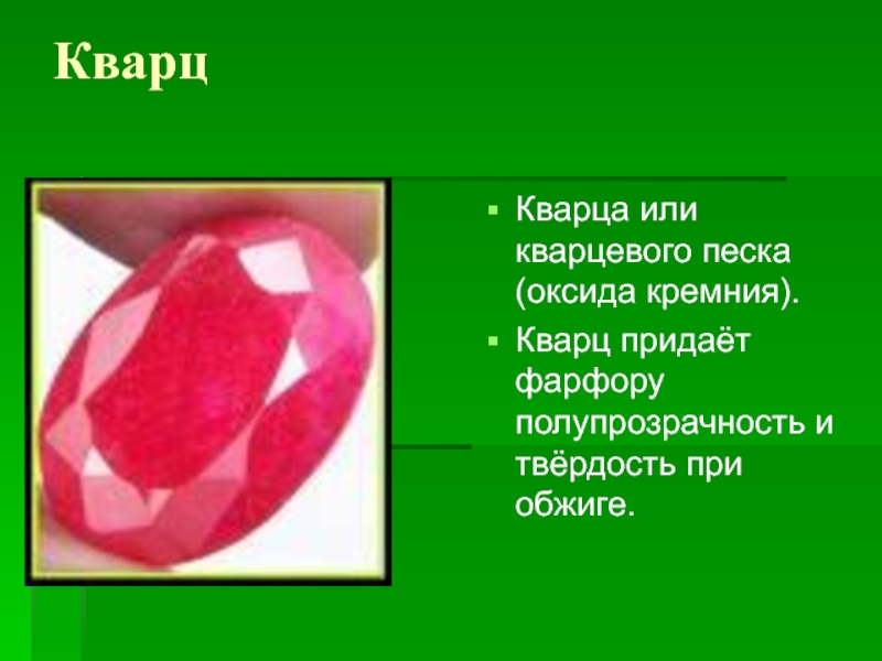Кварц придаёт фарфору полупрозрачность и твёрдость