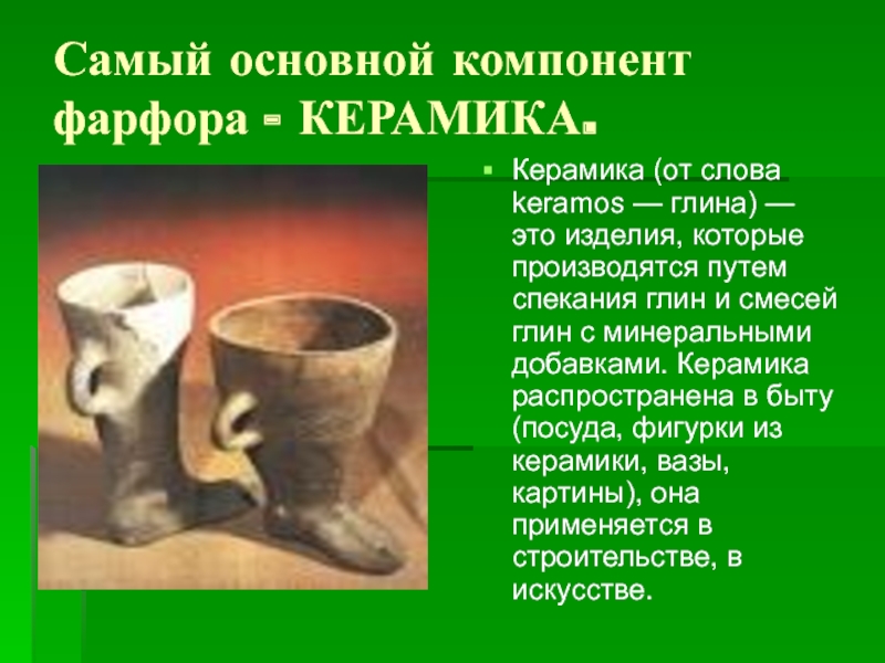 Слайд 4Самый основной компонент фарфора - КЕРАМИКА.