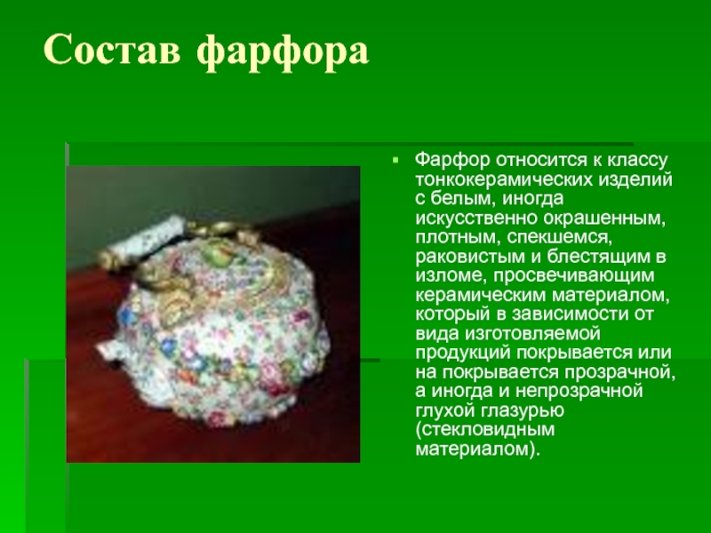Фарфор относится к классу тонкокерамических изделий с белым, иногда искусственно