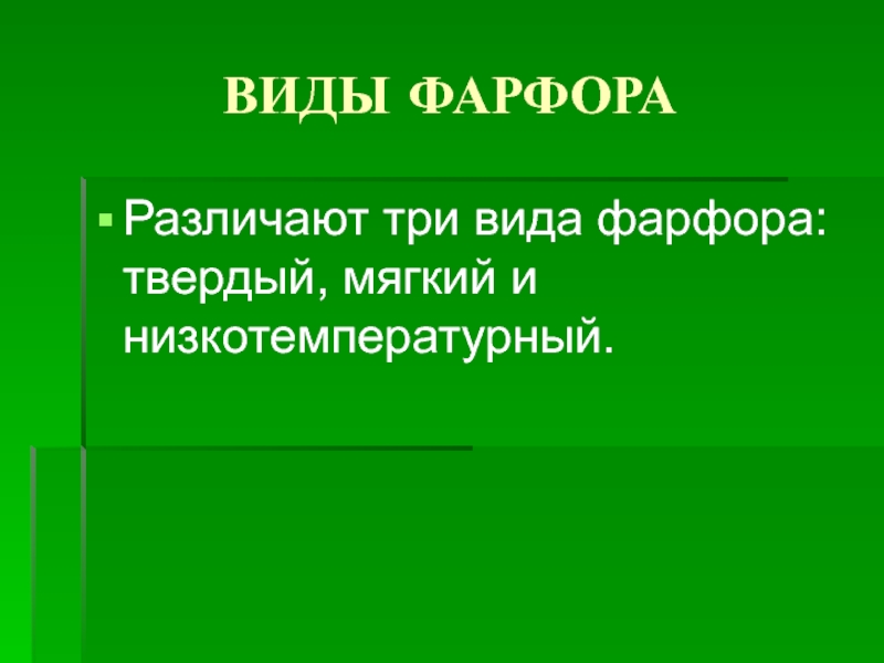 Различают три вида фарфора: твердый, мягкий и низкотемпературный.