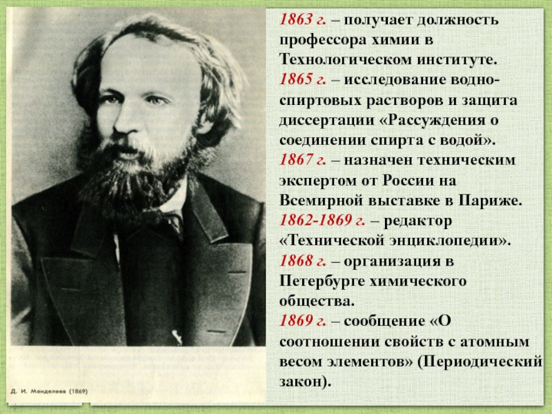 «Среди многих тружеников науки как яркие звезды выделяются имена тех выдающихся ученых, чей гений сохраняет в веках немеркнущее сияние славы, чьи труды являются основанием и исходным пунктом творческой деятельности новых поколений, чьими именами гордятся страна и народ, родившие и воспитавшие их. К числу таких гениев в первую очередь относится Менделеев»