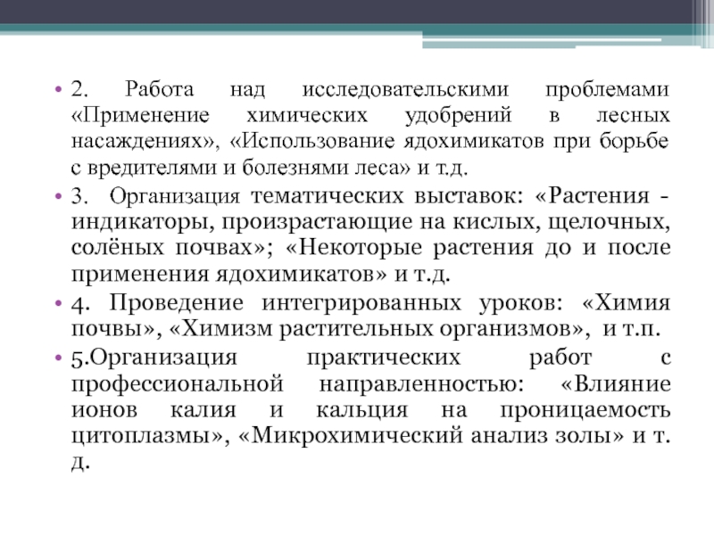 Слайд 92. Работа над исследовательскими проблемами «Применение химических удобрений в лесных насаждениях»,
