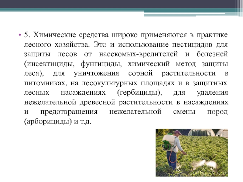 Слайд 55. Химические средства широко применяются в практике лесного хозяйства. Это и