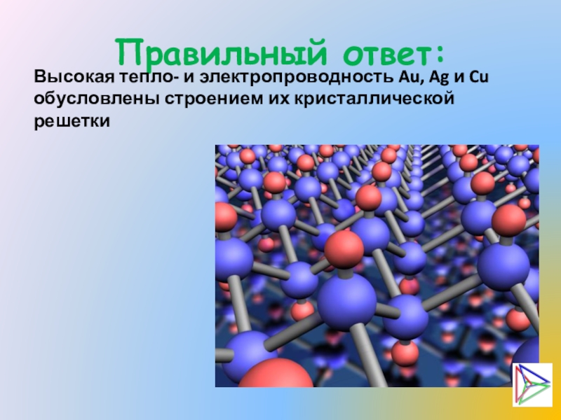 Высокая тепло- и электропроводность Au, Ag и Cu обусловлены строением