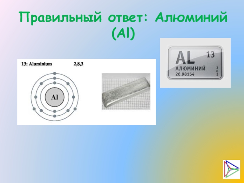 Слайд 8Правильный ответ: Алюминий (Al)