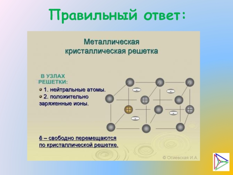 В узлах кристаллической решетки металлов находятся положительно заряженные ионы и
