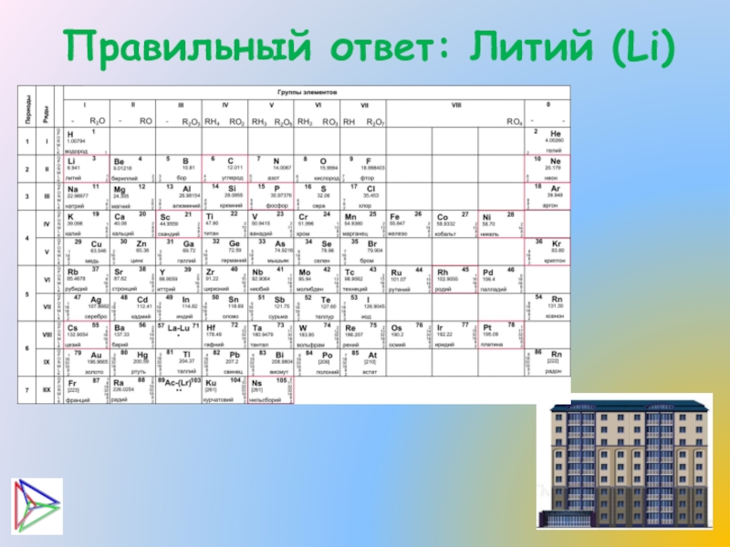 Слайд 6Правильный ответ: Литий (Li)
